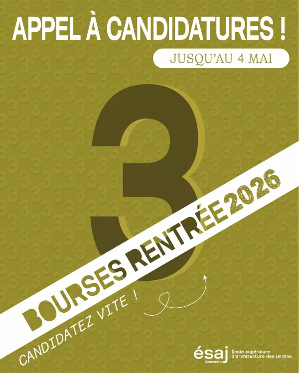 Une opportunité unique pour intégrer l’ésaj en 1ère année, avec la prise en charge totale des frais de scolarité pour notre Bachelor en architecture du paysage (formation en 3 ans).
